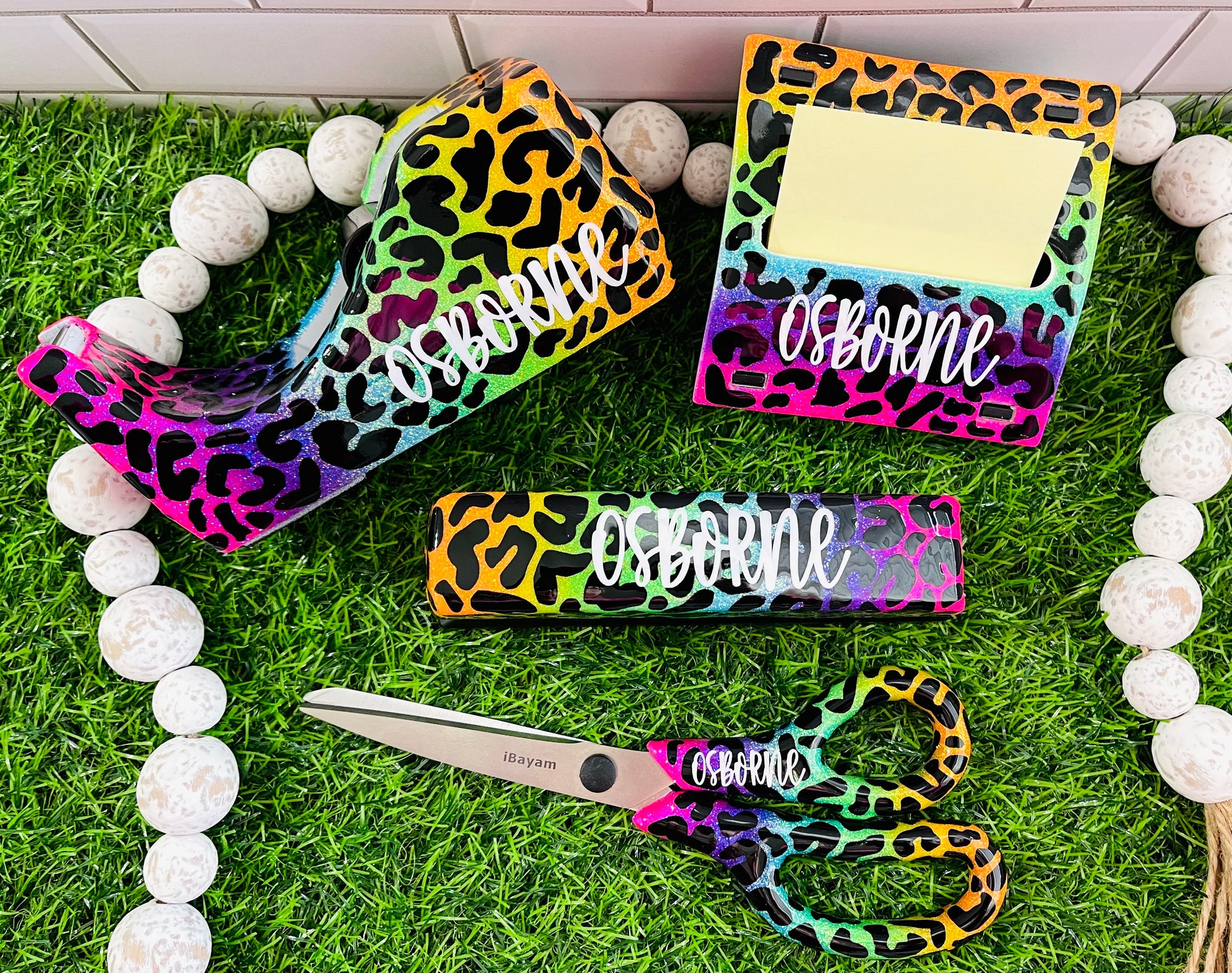 Full Leopard & Rainbow Print Glitter Office Supply Set